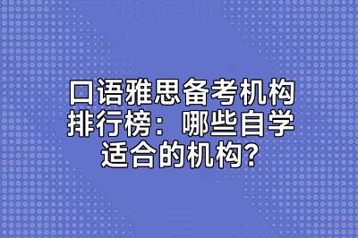 如果你正在准备雅思考试,尤其是口语部分,你可能会发现很难找到一个合适的培训机构。那么,哪些机构最适合自学呢?让我们来看看口语雅思备考机构排行榜。