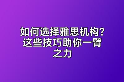 选择雅思培训机构需要综合考虑多个因素。只有选择了适合自己的机构,才能更好地提高自己的英语水平。希望以上的技巧能够帮助你做出正确的选择。